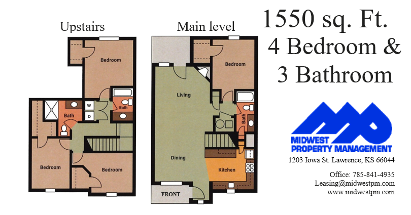 This 4 bedroom, three bathroom townhome was remodeled from the ground up January 2020! This unit has new vanities in the bathrooms, new kitchen cabinets and countertops and every appliance installed was brand new. Village @ West End is a quiet place to call home with just 70 units here on site. Our townhomes come with a washer and dryer in every home. Located on the west side of Lawrence away from the hustle and bustle that a college town can have, but within walking distance to the bus stop so that you can quickly get you to campus and all around Lawrence. Rent $1800/month Deposit $1800